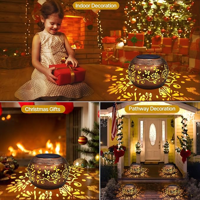 - 【Butterfly Projection Solar Lanterns】 Vintage Metal Solar Lights with Butterfly Motifs project enchanting floral & butterfly patterns through laser-cut hollow designs. Perfect for creating fairy garden decor or romantic wedding pathways, these IP65 waterproof lanterns transform any space into enchanted butterfly habitats. Amazon's Choice for unique gardening gifts for women who love nature-inspired outdoor lighting.