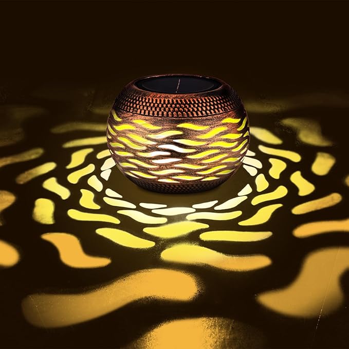 - 【Hollow-Out Metal Projection Lanterns】 Vintage Outdoor Solar Lanterns feature intricate hollow-out metal designs that cast mesmerizing patterns when illuminated. Perfect for creating romantic Christmas patio decor or elegant New Year garden lighting, these weatherproof solar projectors transform pathways and tabletops into enchanted spaces. An ideal gardening gift for women seeking unique outdoor decor with artistic flair.