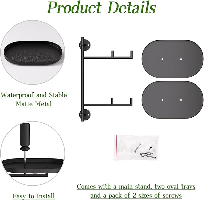 - 【Wall Mount Window Plant Shelves 】: YQSLYSF 2-tier black window plant shelves feature oval trays for two to six pots, sized between 4" to 6". The plant stands, crafted from wrought iron, are sturdy, with raised-rim bases to prevent pot falls. The indoor plant stand poles are one-piece, and no assembly is required