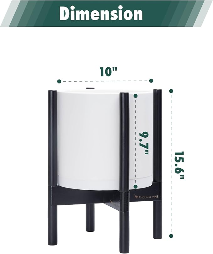 - A Complete Set: Minimalist plastic planter, combined with a sculptural, solid wood stand that match perfectly together and looks great in any home.