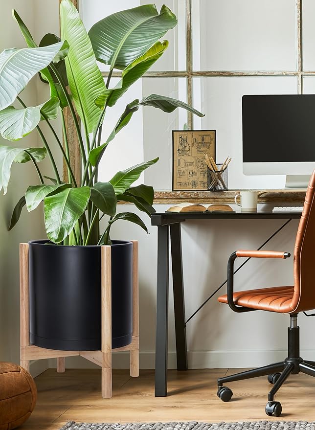 - A Complete Set: Minimalist plastic planter, combined with a sculptural, solid wood stand that match perfectly together and looks great in any home.