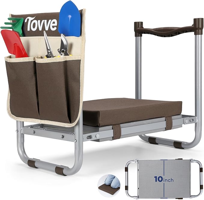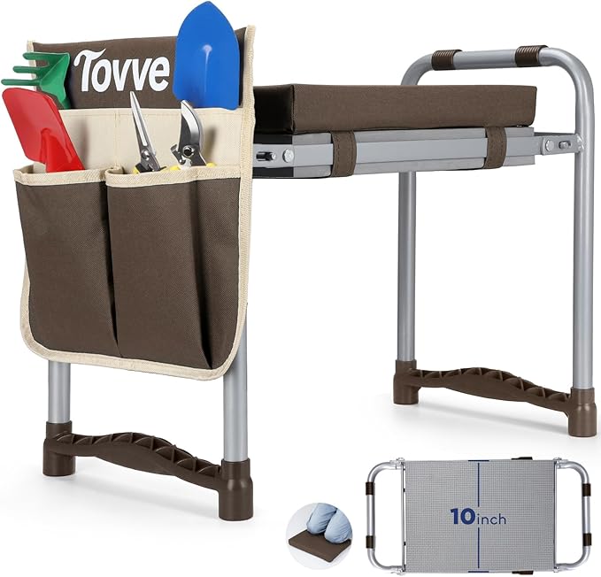 - 【2 in 1 Garden Stool】This 10-inch wide garden kneeling seat provides you with better comfort and support, making gardening easier. It can be used as a comfortable garden seat for pruning taller plants. It can also be laid flat on the ground as a supportive kneeling pad to avoid dust and weeds when kneeling to weed. Reduce the pressure on your back and knees when gardening.