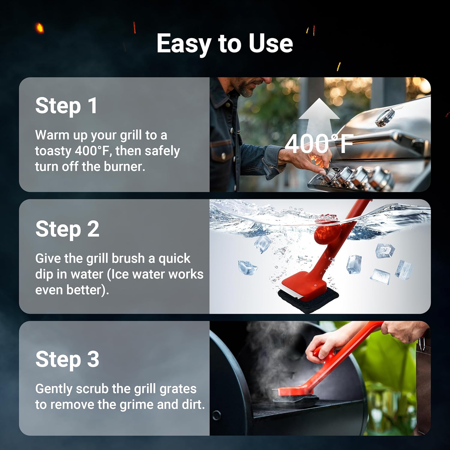 - ๐๐๐๐ ๐๐ซ๐ข๐ฅ๐ฅ ๐๐ฅ๐๐๐ง๐ข๐ง๐ ๐๐ซ๐ฎ๐ฌ๐ก : We use the steam cleaning principle, without harsh chemicals! Safer and much cleaner than nylon, wire grill brush