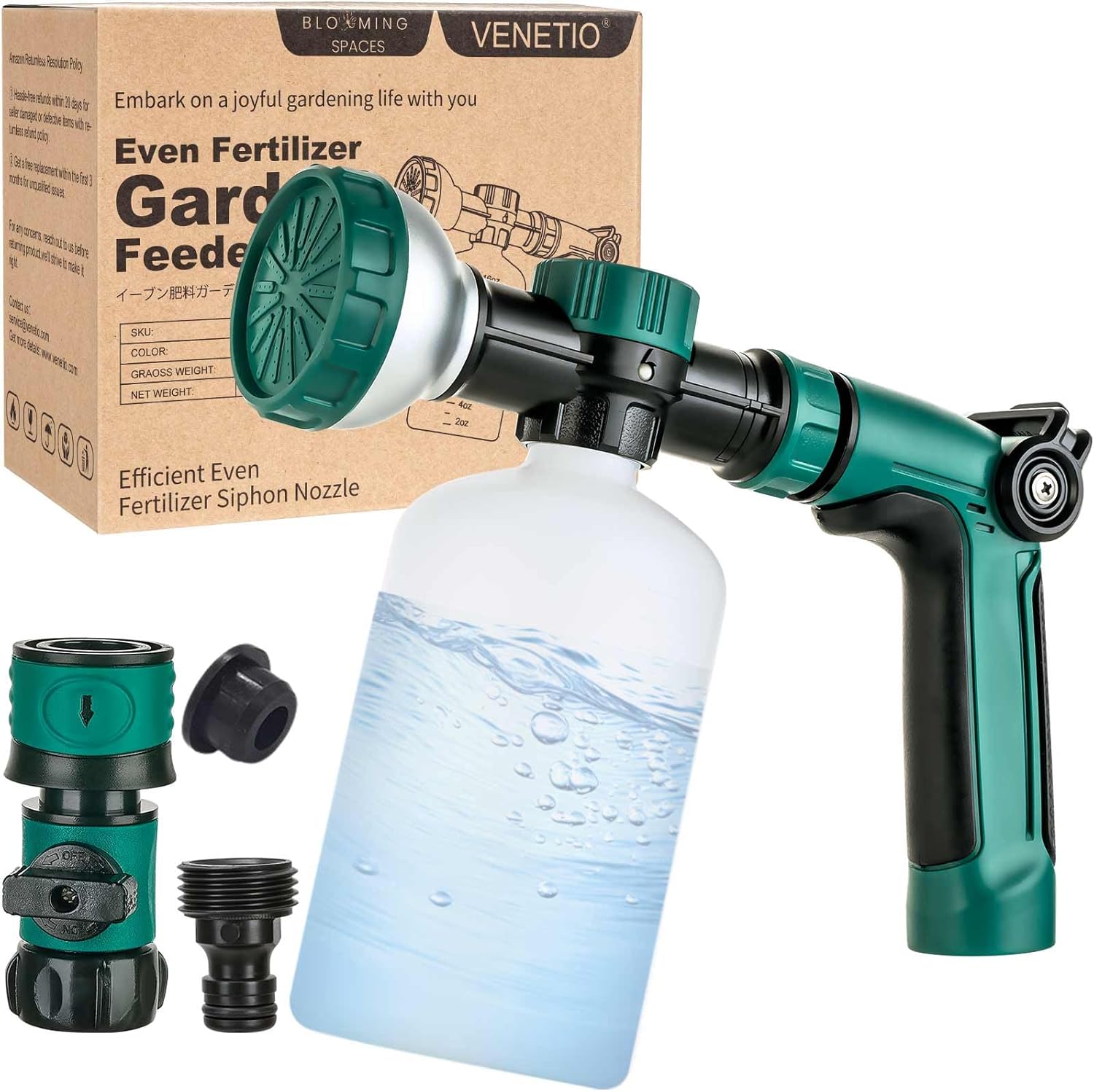 VENETIO 8-Dial Lawn & Garden Feeder Pro with Quick Connect Fittings and 16oz Bottle for Uniform Fertilizing & Watering Plants | Precision Liquid Fertilizer Sprayer | Hose Spray Nozzle for Dog Shampoo