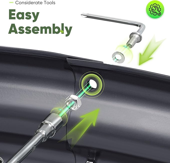 - 【Effortless Assembly, Built to Last】Even gardening beginners can quickly and easily assemble the raised garden bed kit with the two installation tools provided. The iron sheets and fixing points fit tightly together, ensuring no soil leakage or structural collapse.