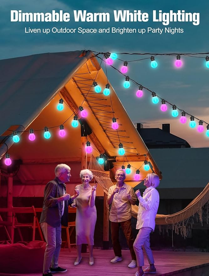 - APP and Voice Control: Using APP control the patio lights remotely to create an great decor for a cheerful party or to create a romantic surprise. Pair with Alexa and Google Assistant, turn on or off, set color and brightness with just a command.