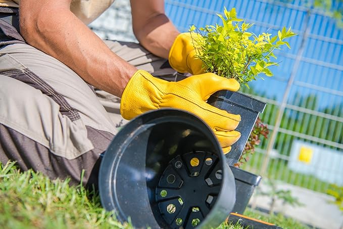 • Wide Range Application: These leather work gloves material is naturally breathable, sweat-absorbent and comfortable. Perfect for construction, Yardwork, Driver, Gardening, Farming, Landscaping, DIY projects, Wood cutting, etc.