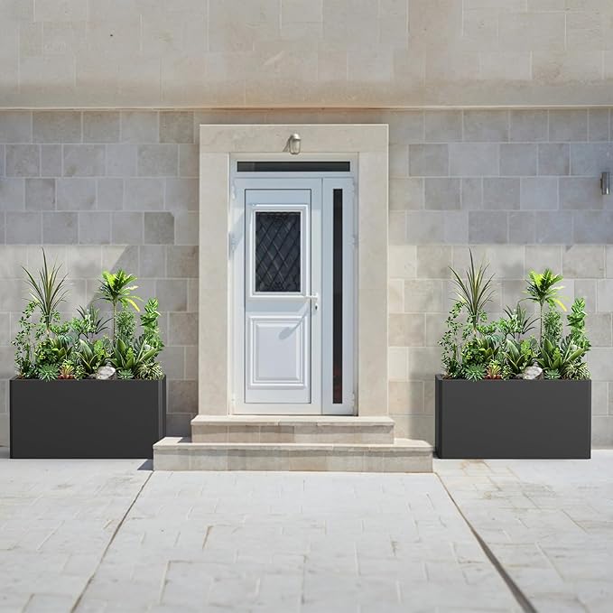 - Planters Box for Outdoor Plants: We suggest you use this flower box outdoors, there is no leak proof tray at the bottom of the box . we provides 5 Years Warranty and 24 hrs customer service. If you have any questions with outdoor planters box, pls contact us, and we will solve all of your problems.
