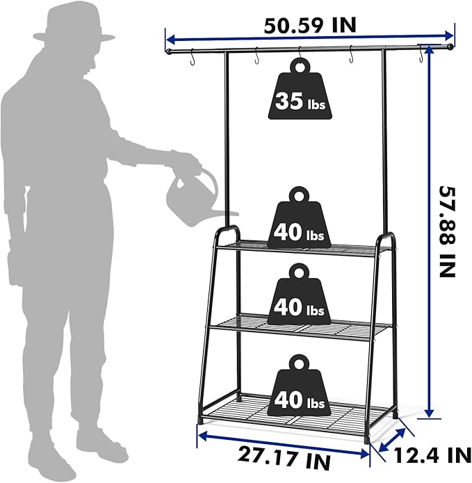 - Ideal Placement: Perfectly suited for living rooms, gardens, and balconies, this tall and large rack offers an ideal solution for displaying your plants. Its elevated design allows for easy viewing and maintenance, while the ample space ensures that your plants receive the attention they deserve. Whether you’re a gardening enthusiast or simply looking to add some greenery to your home, this stand is a versatile and functional choice.