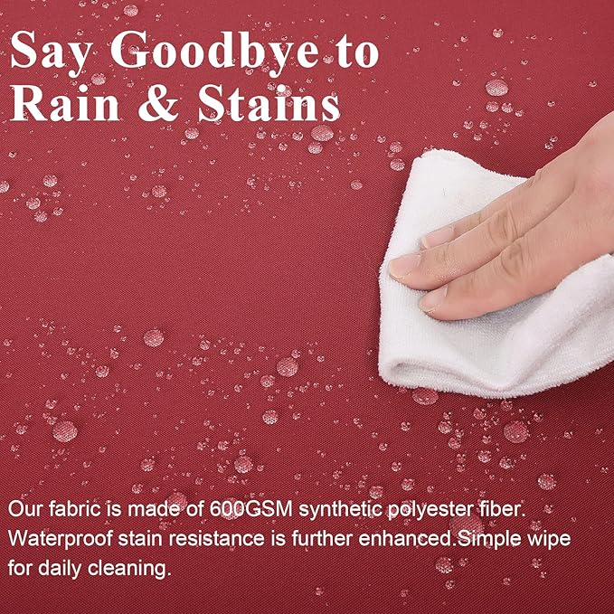 - WATERPROOF FABRIC: The patio chair cushion is made of 600GSM high density polyester waterproof cover with waterproof PU coating inside. All-around waterproof and rainproof to protect the inner sponge