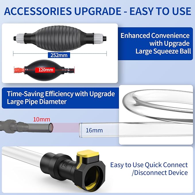 - More Time-Saving: Our golf cart battery water filler features larger PET pipes, upgraded from 11mm to 16mm in diameter, significantly enhancing water flow speed. With airbag, this allows you to complete the watering task in half the time