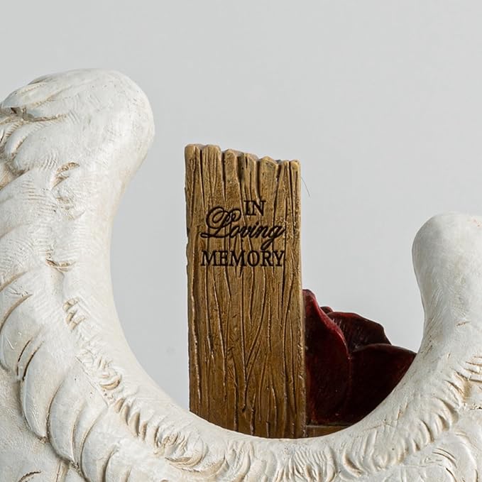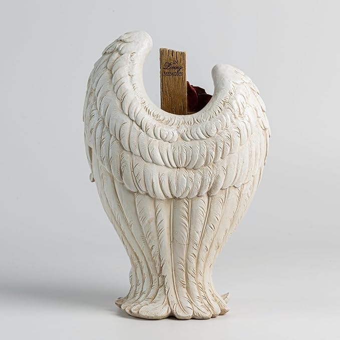 12" Angel Wings Embracing Cross and Rose Garden Statue Memorial Statue for Beloved one