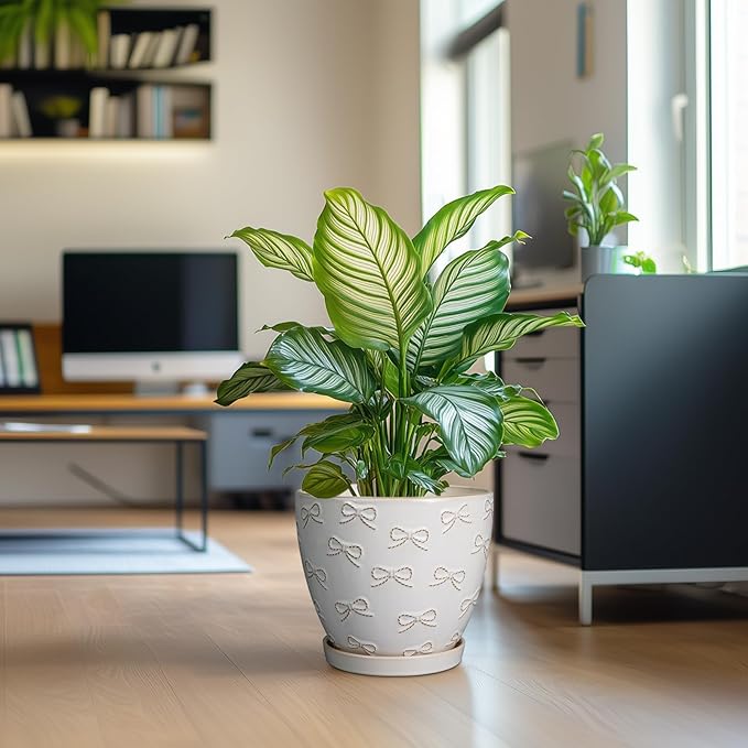 - Stylish Appearance: Our ceramic planter pot has a white main colour, a beautiful embossed bow tie pattern on the surface, elegant appearance making it ideal for home decor, garden decor and office decor