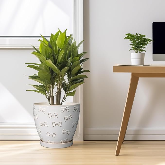 - Stylish Appearance: Our ceramic planter pot has a white main colour, a beautiful embossed bow tie pattern on the surface, elegant appearance making it ideal for home decor, garden decor and office decor