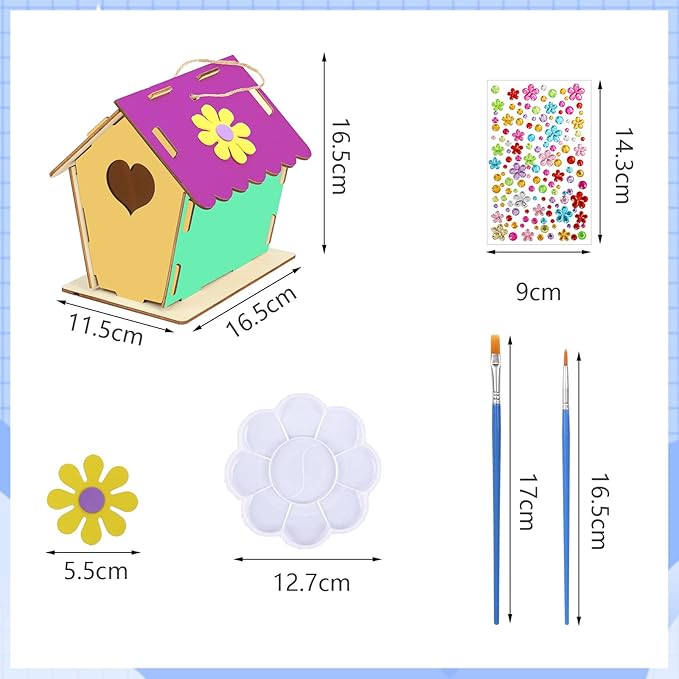 - Bird House Craft for Kids: Our DIY arts and crafts kits come with everything needed to create birdhouse,bird feeders and wind chimes, including 12 paints, 2 brushes, a sheet of diamond stickers, strings, and instructions.Fully equipped, kids can play freely and create their own artwork!Fun and creative crafts keep them busy and enjoy the handcraft entertained.let their creativity run wild!