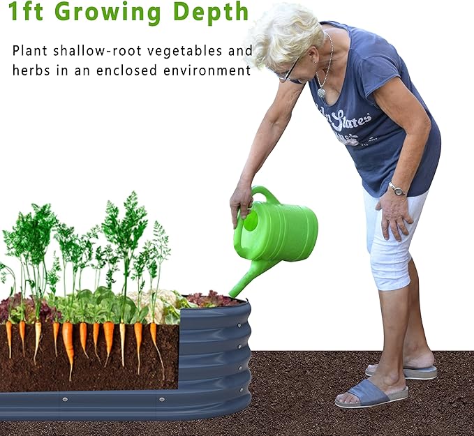 - Size: 144"(L) x 20"(W) x 12"(H),0.7mm 2PCS Galvanized planter raised bed provide outdoor sufficient space to grow vegetables,flowers,galvanized garden bed,Two can be stacked and assembled together