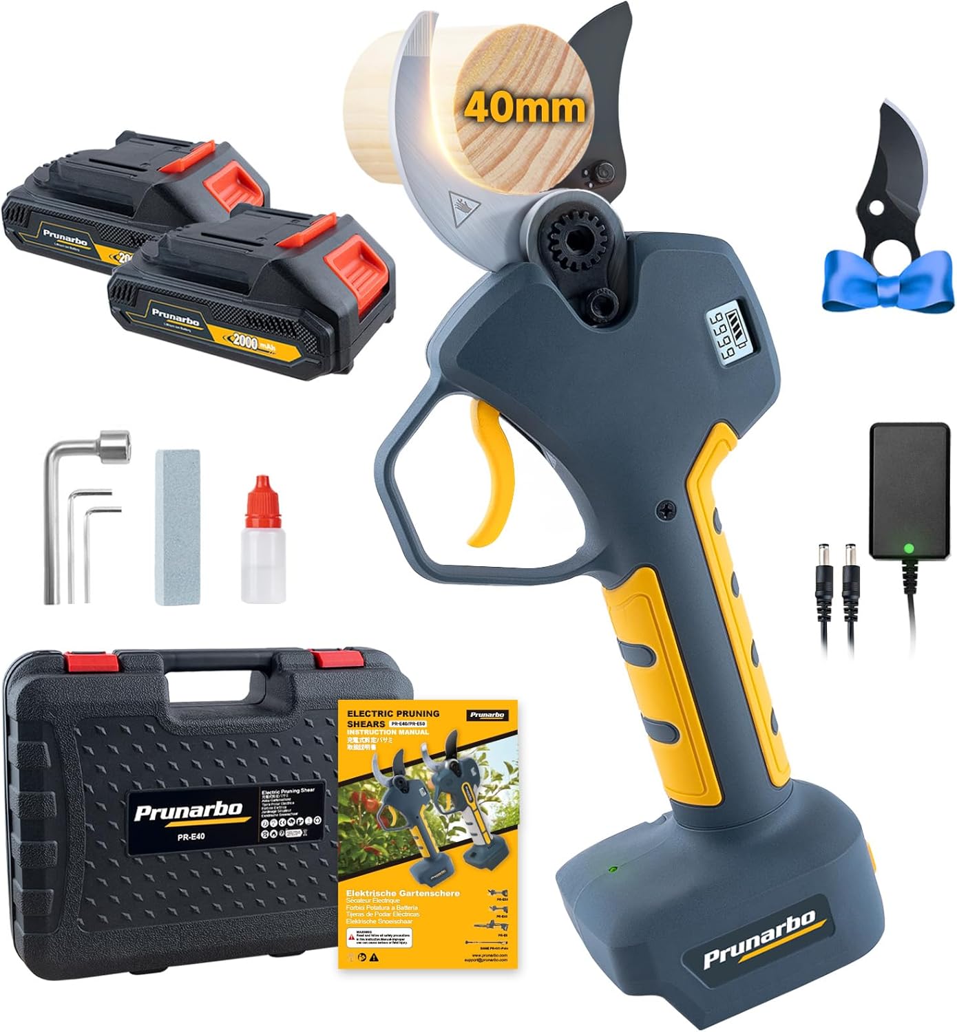 - 【4000mAh Battery & Compatible with Makita】Prunarbo electric pruner comes with 2 * 2000mAh batteries, delivering 6-8 hours of continuous pruning to keep you going all day! Plus, cordless pruner are fully compatible with Makita 18V batteries, making them a convenient choice for Makita users. Rotating between multiple batteries helps prevent overuse, extend battery lifespan, and ensure uninterrupted pruning.