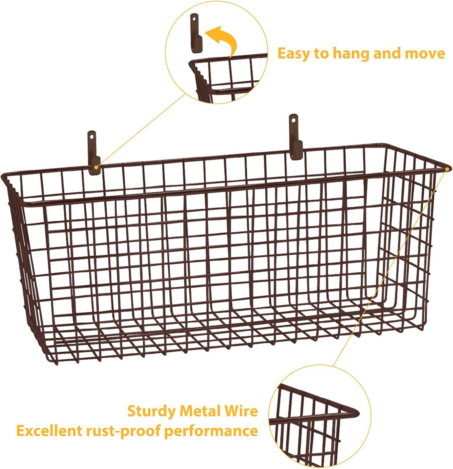 2 Sets Extra Large Hanging Wall Basket, Brown Metal Wire Baskets with Steel Hooks for Organizing, WallmountedFruit Vegetable Toy Snack Storage, Home Kitchen Bathroom Laundry Pantry Organizer