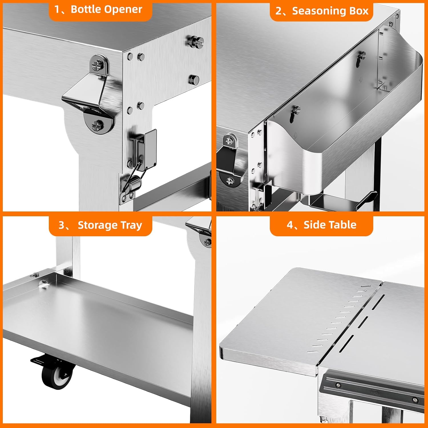 - MULTIFUNCTIONAL USE: This outdoor prep table can be used indoors as an extension of your kitchen or workbench.It also can be used outdoors as a barbecue table, pizza oven rack, grill cart, potting table, BBQ cart, pizza oven table, and more