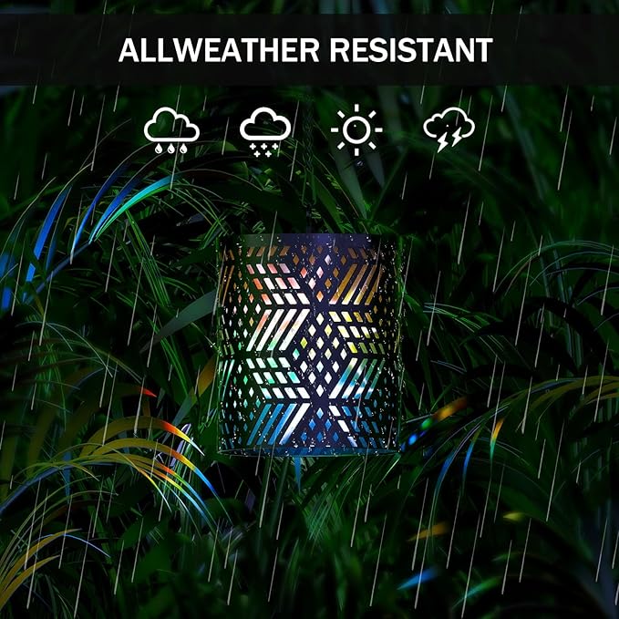 - 【Original design】 With a unique creativity,solar lantern through the special lines,cleverly formed a stunning 3D effect,showing a very attractive pattern.Not only that.The solar outdoor lantern also adds RGB color function to render a colorful color for your garden.It can be a bright focal point for outdoor plant POTS,and can bring warm light to your garden at night,making your garden like a fantasy wonderland.