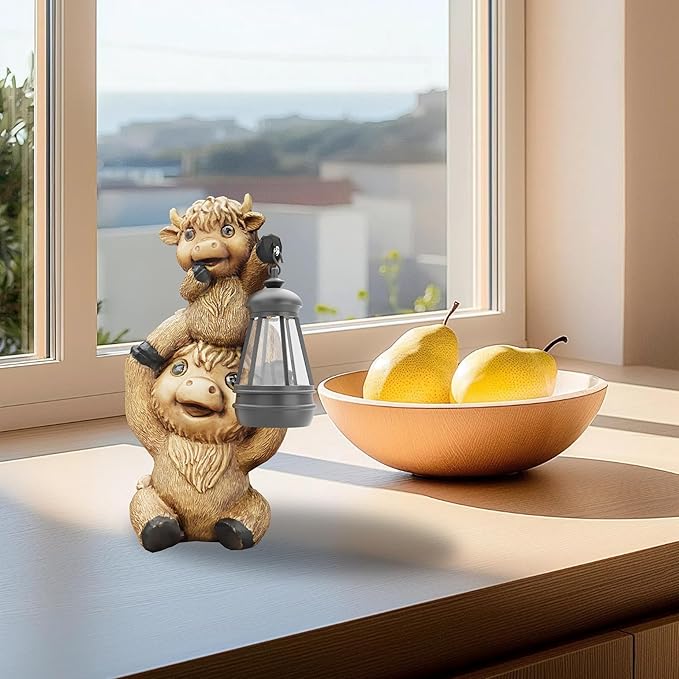 - Highland Cow Statues with Solar Lights, Highland Cow Resin Figurine Lights, Highland Cow Ornaments for Patio, Balcony, Indoor Decoration and as Gifts