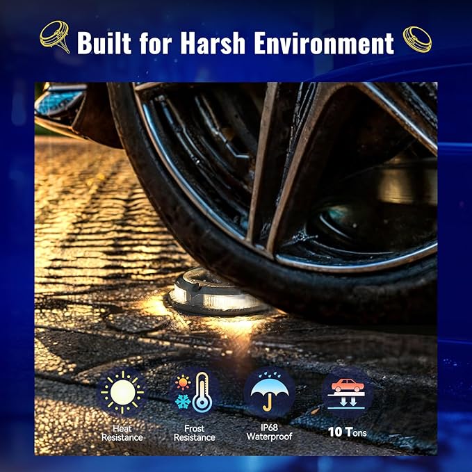 - 【Fast Charging & Long Battery Life】Our solar driveway lights use monocrystalline silicon solar panels, 5V/80mA solar panel batteries, up to 50% conversion efficiency, can be fully charged in 4-5 hours, equipped with 12 high-brightness LED beads, providing more than 30 hours of lighting. If you install it on the driveway and deck, it is a good choice whether it is a driveway marker or a garden decoration