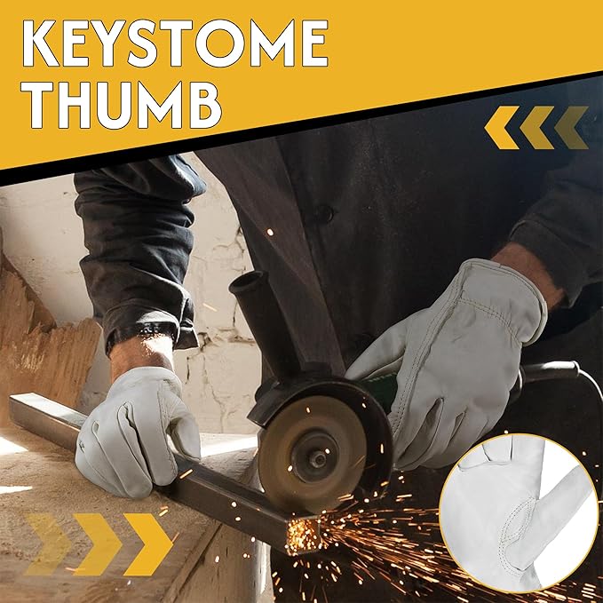 • Enhanced Grip & Durability: These leather work gloves designed with a reinforced patch at the key points for extra durability and grip. Whether you’re handling tools, materials, or working in tough conditions, the additional reinforcement helps you maintain a firm, reliable grip while ensuring long-lasting wear