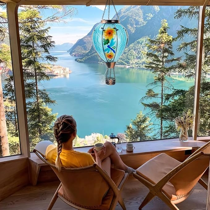 - 【Hanging Solar Light with Flickering Flame】The glass hot air balloon solar lantern with metal "S" hooks can be easily hung anywhere, such as balconies, porches, ledges or trees. The bright hot air balloon decorations during the day can add color to your outdoor space, and at night to add a warm and romantic atmosphere to your homeland.