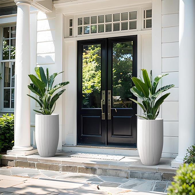 - Large & Versatile – Whether displaying a vibrant plant indoors or elegantly placed on your front steps, porch, or patio, this spacious planter effortlessly adapts to any setting. Its distinctive style complements a wide range of décor, from modern and minimalist to traditional, adding a touch of sophistication and charm to your space.