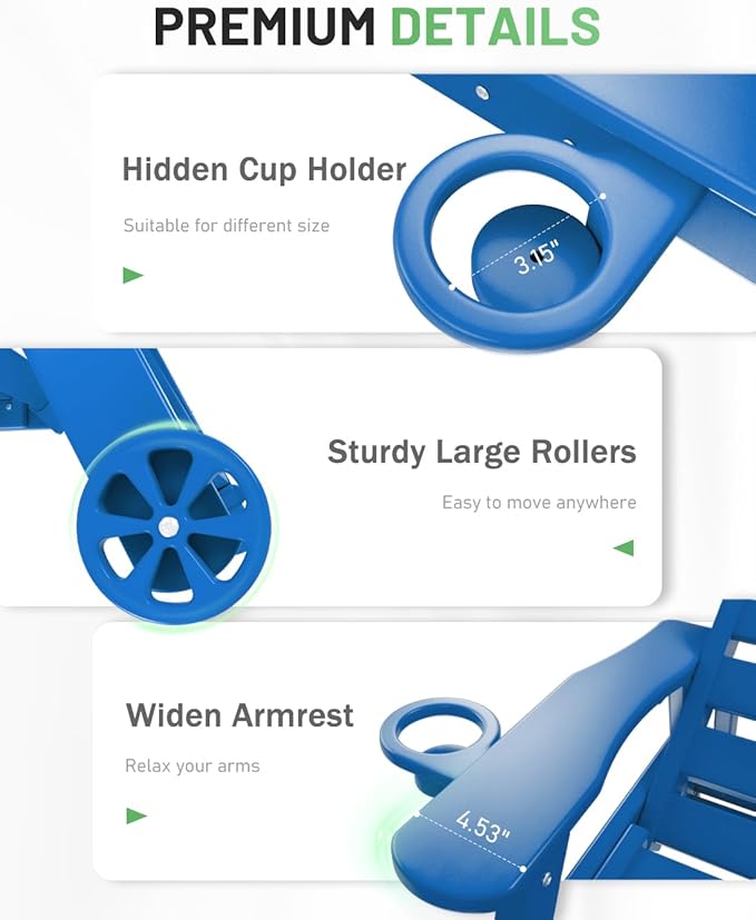 - Premium Suunyn HDPE: The polywood chaise lounge are made from high-density HDPE, which bends slightly under heavy weight or high temperature but returns to its original shape when the weight is removed or the temperature has dropped. This durable material withstands harsh weather and is easy to clean