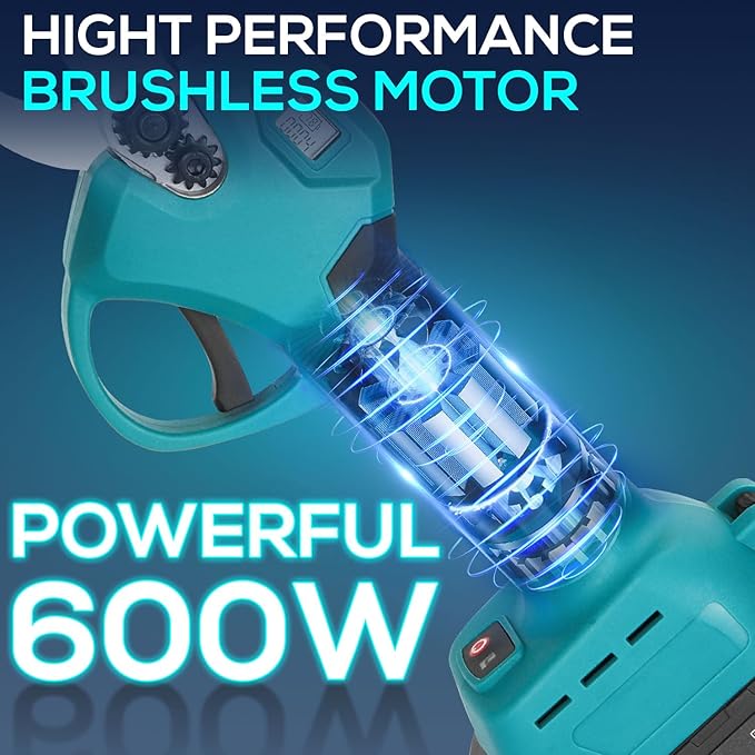 - User-Friendly LCD Display: Monitor your pruning needs easily with the built-in LCD display on the cordless pruning shears. This intuitive screen provides battery life and cutting times, ensuring you have total control over your electric branch scissors during every use