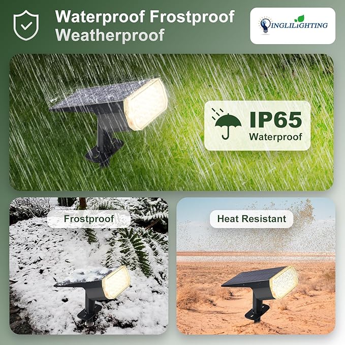 - 4.Outdoor Lights Say Goodbye to Complicated Wiring:Solar Powered Spotlight are easy to install and require no additional power sources, just plug and play. Whether it's para, stakes, or decks, you can easily create your ideal outdoor space."Dont live up to every beautiful moment.Enjoy life .”