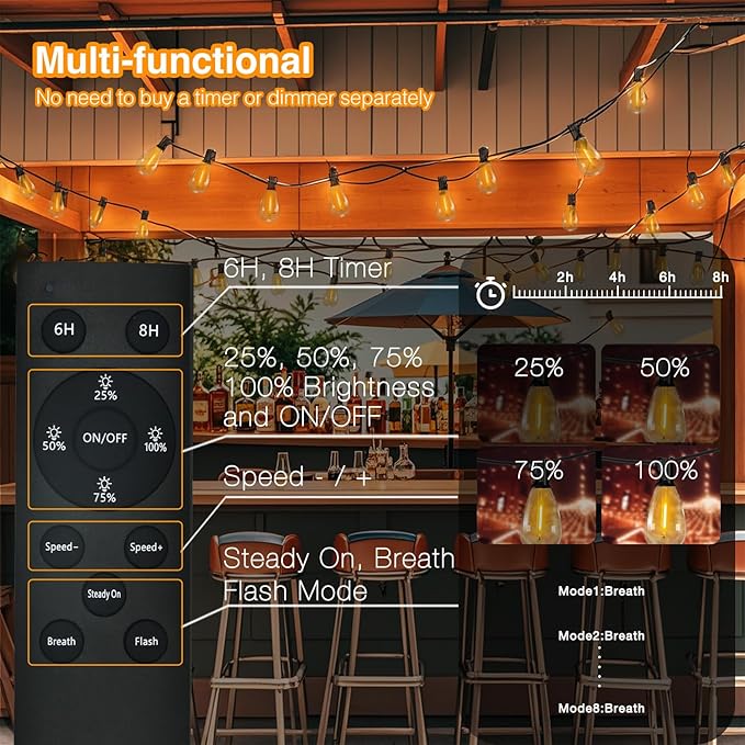 - Solar String Lights Outdoor 100FT with 5W solar panel Shatterproof and Waterproof. Solar String Lights come with several lighting modes, including steady on, flashing, or fading. Luces solares automáticas