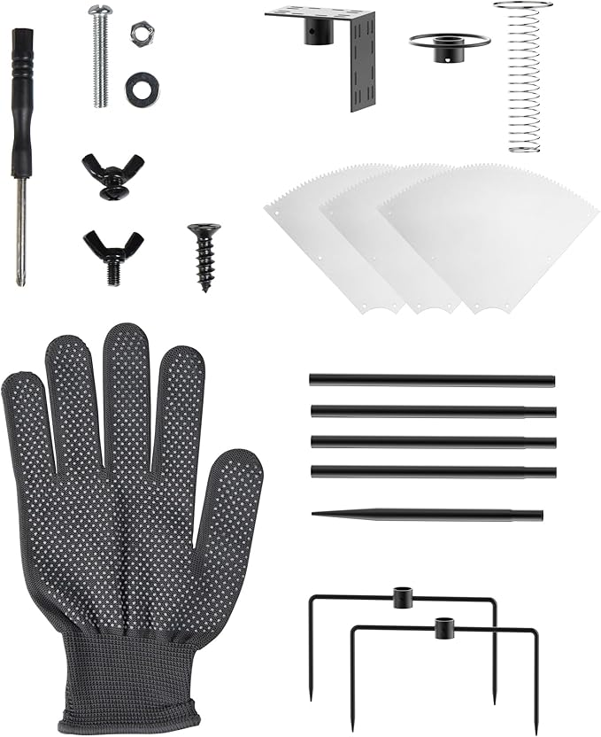 - 【Easy Installation】 This 104 inch bird feeding station includes 6.5-inch 5-prong bases, 7 connecting poles, an L-shaped plate, and a squirrel baffle. The slip-in connection makes assembly as easy as stacking blocks, while the wing nut design enables tool-free, adjust the baffle 8-10" above ground to stop squirrels, one-person setup in about 30 mins. This user-friendly design ensures everyone from young enthusiasts to seniors can assemble effortlessly.