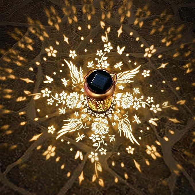 - 【Graceful design style】: Classical appearance, golden copper color and hollow metal finish, the beautiful lantern projects warm and vivid light in the dark, accompanied by gorgeous and elegant hummingbird flying patterns, adding a beautiful atmosphere to the surrounding environment.