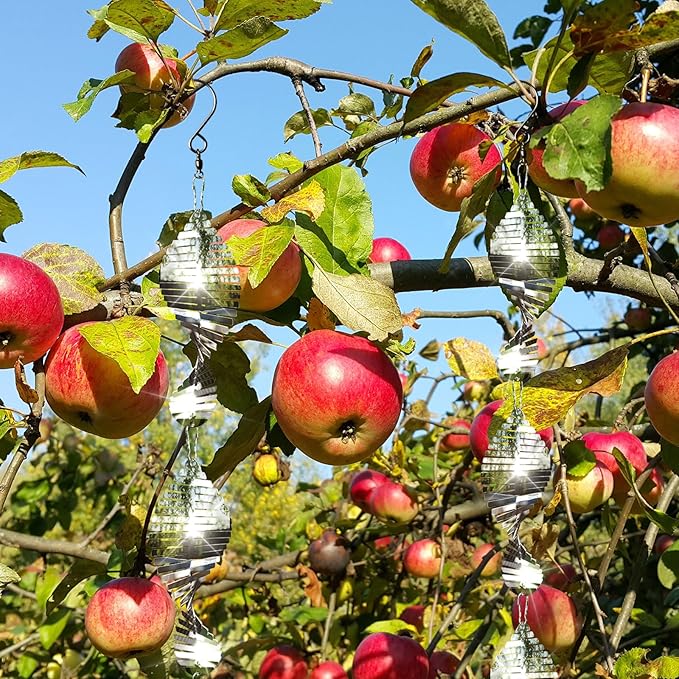 - 【360° bird scare】animal deterrent devices outdoor The bird reflectors equipped with a 360 ° swivel hook can freely rotate in the wind and has a bird repelling effect in any direction effectively intimidating swallows, woodpeckers, pigeons, sparrows, crows, seagulls, etc,To protect your garden, farm or outdoor space from invading birds.