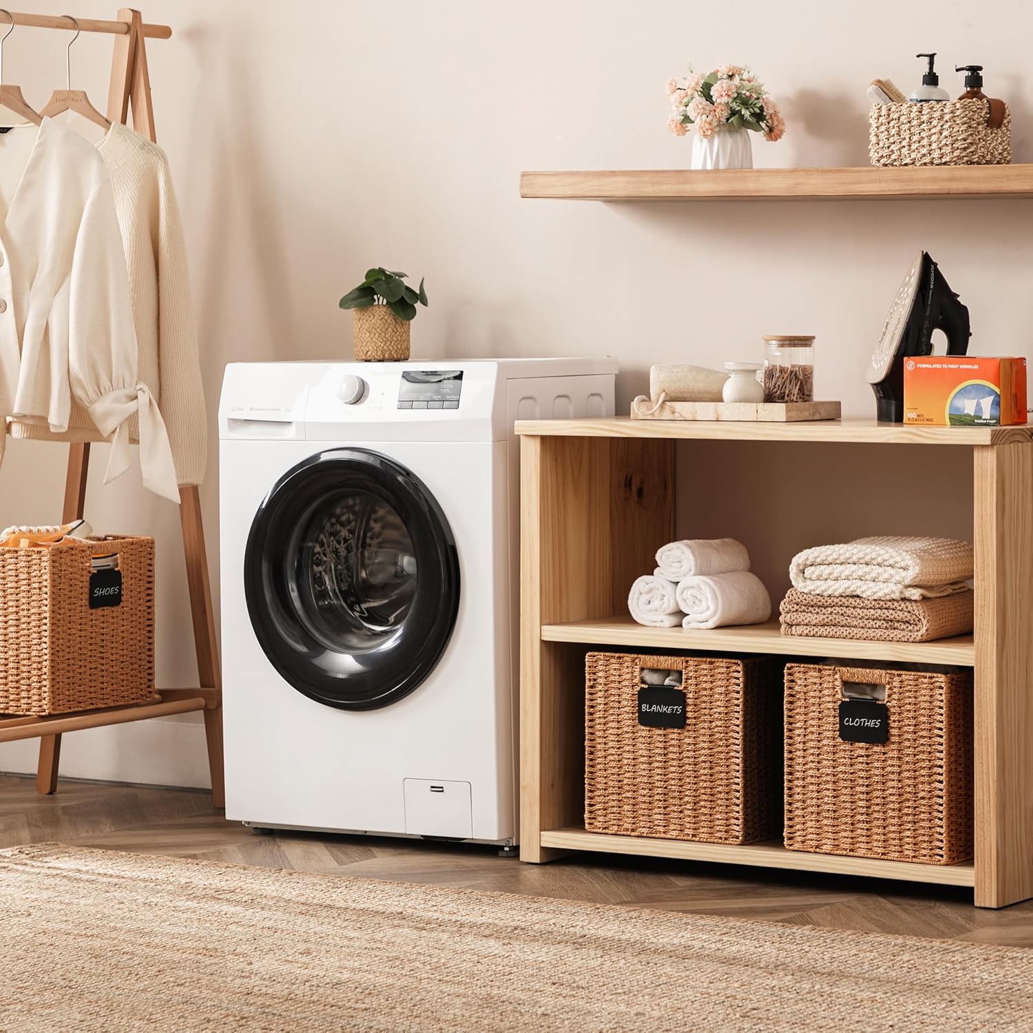 - Easy to assemble: When you receive the package, the wicker storage basket is folded, you just need to open it and put down the bottom board, you will get a perfect wicker baskets. You can fold them completely flat and stack them up against each other to save space when not in use.