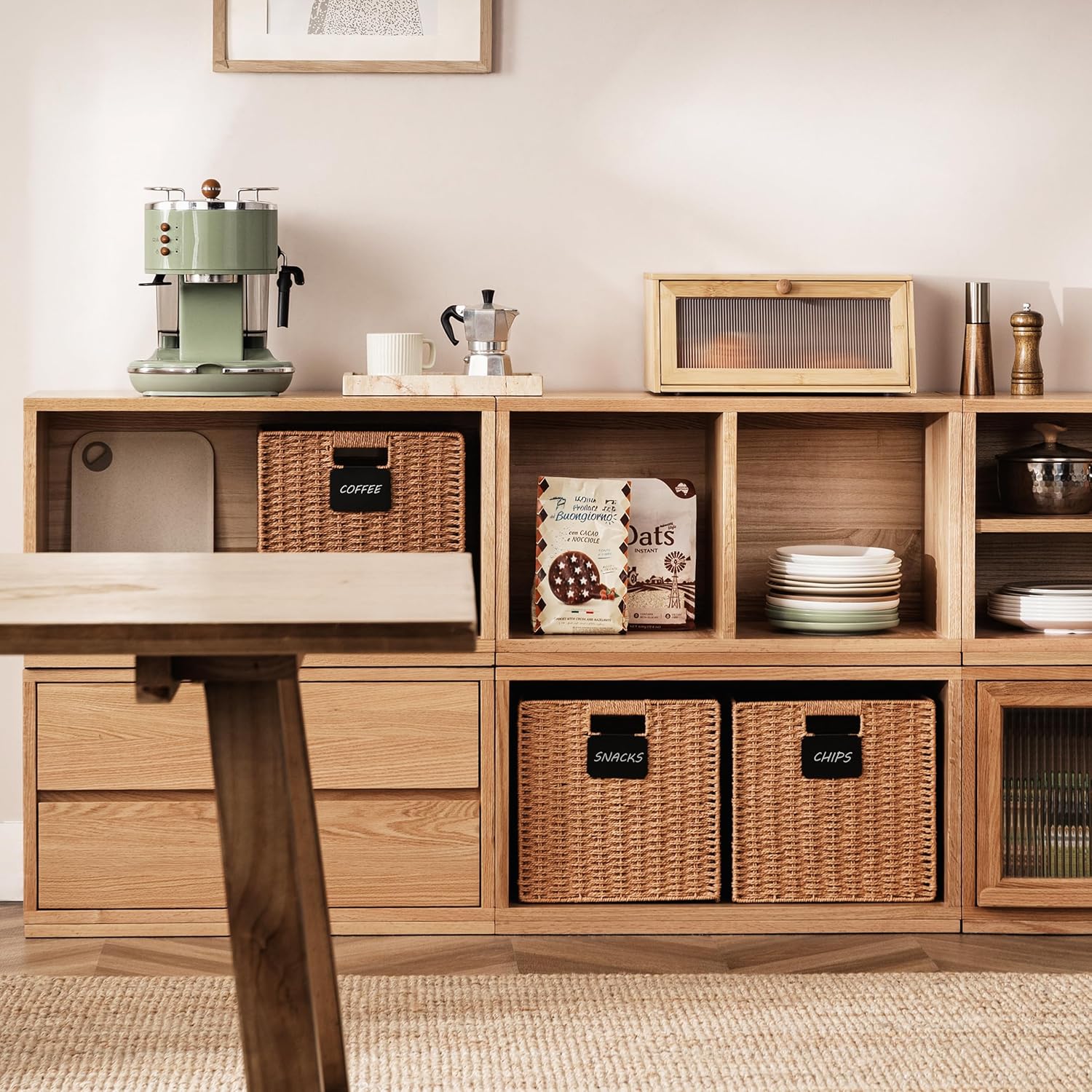 UBBCARE 4 Pack Wicker Basket, 13×13 Storage Cubes with Label, Foldable Cube Storage Bin with Handle, Square Storage Basket for Shelves, Woven Paper Rope Basket for Organizing, Caramel