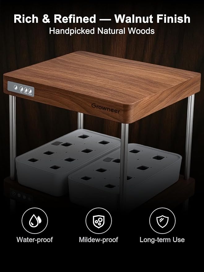 GROWNEER HydroEasy1.0 Hydroponics Growing System Kit, Beginner-Friendly Indoor Garden for Vegetable Fruit Herb, Walnut Design, Perfect Gift Idea, Full-Spectrum LED Lights for Maximum Growth