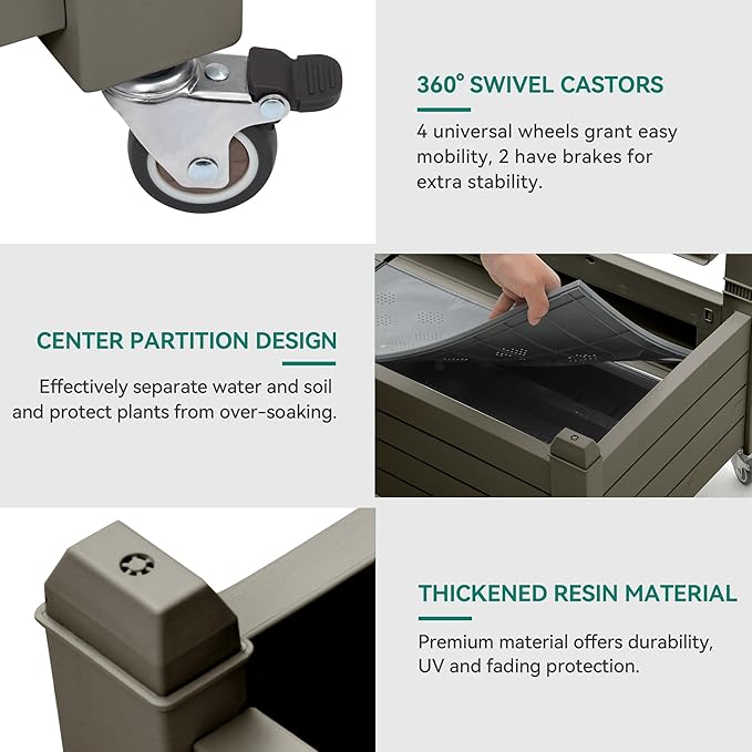 - Generous Capacity and Mobility: Measuring 3.6 x 1.5 x 5 feet, this raised planter bed with trellis holds up to 21 gallons of soil; Equipped with four swivel wheels, it offers easy mobility, making it ideal for versatile gardening needs