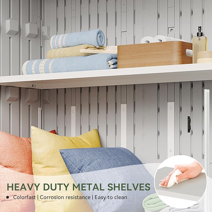 - 【Widened Anti-toppling Bottom Design】Our storage shed bottom has a widened design to effectively enhance stability and prevent toppling due to unstable center of gravity. Even on uneven ground, it can remain stable. The specially designed top and bottom door suction system effectively prevents the door from accidentally closing or opening, ensuring the stability and safety of the tool room during use. Even if it is opened and closed frequently, the structure can be maintained for a long time.