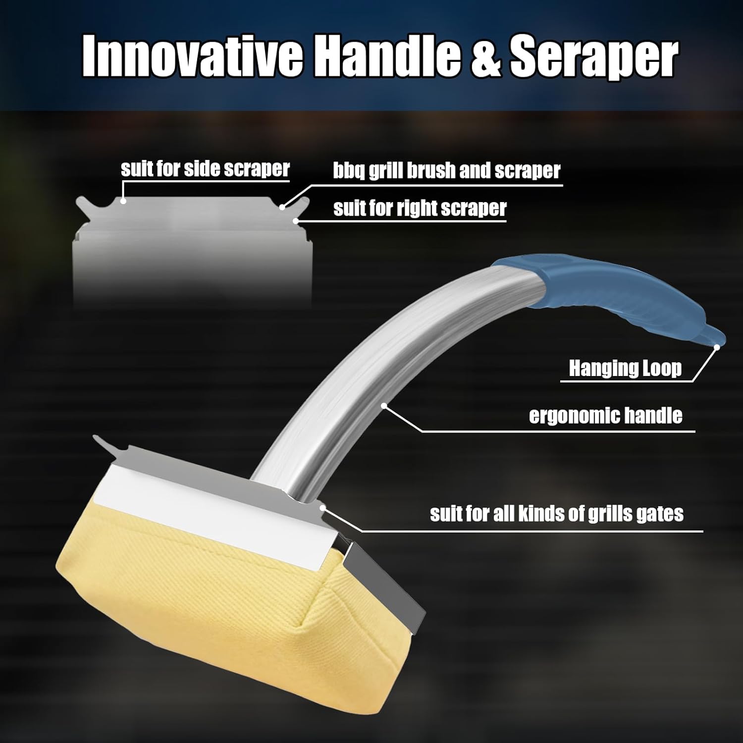 - Ease of Cleaning: Featuring heavy duty, food grade stainless steel bristles and a scraper,this grill cleaning brush is designed for thorough cleaning.the notched edges of the scraper access between and beneath the grill grates, ensuring a deep clean that removes grease, char, and food residue.every use leaves your grill available for the next cookout,so you can love a new start every time