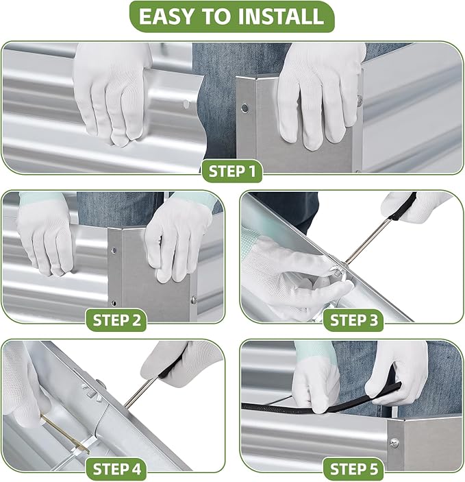 - 【 Fast Assembly 】 Metal raised bed unique wing nut design allows quick tool-free assembly in just 35 minutes. Raised bed garden planters compact interlocking panels save storage space and prevent soil leakage.