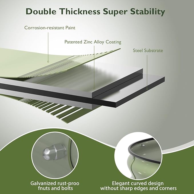 - Upgraded Durability and Structure: The thickness of this galvanized corrugated steel raised garden bed reaches 0.6mm, and the thickest part can reach 1.4mm, Multi-screw reinforcement prevents deformation and can be reused for many years