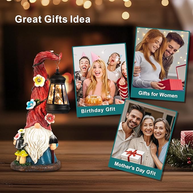 Solar Gnome Garden Statue Lights Gnome Figurine with Solar Lantern, Outdoor Garden Succulent Waterproof Ornaments Decorations for Yard, Lawn, Patio – Ideal Gift for Women, Mom, Grandma, Etc.