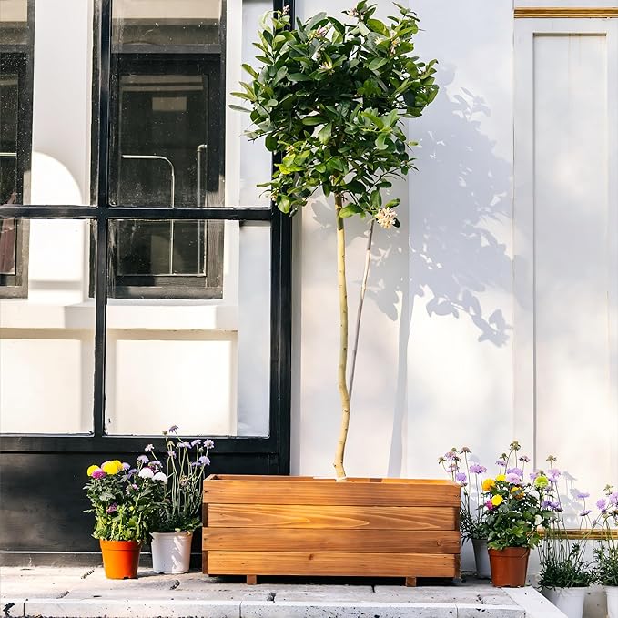 - Elevated Support Bars: Three sturdy wooden support bars (1.2" thickness) reinforce the base, allowing it to bear the weight of heavy soil and plants. These bars also elevate the planter off the ground to improve ventilation and protect against ground moisture