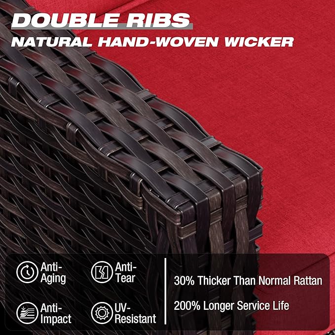 - Premium Frame & Wicker: The Patio wicker chair made of high-quality handwoven wicker rattan, durable and not break easily for all-weather use, frame made of powder coated steel frame ensures good strength and stability