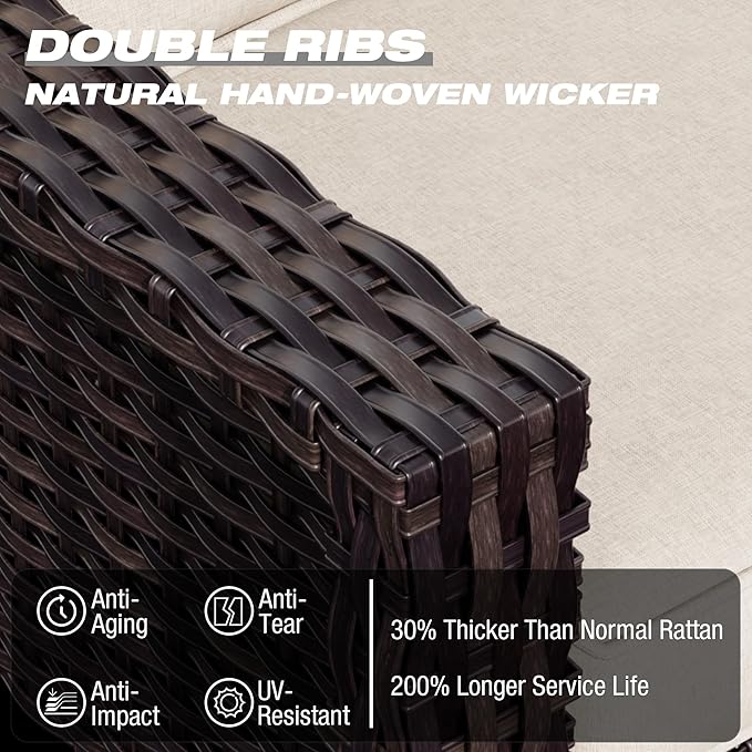 - Ergonomic Design: Our outdoor wicker chairs are upgraded to a larger size to bring you more extraordinary comfort. The ergonomic curved backrest and wider armrests provide better support for your neck and arms