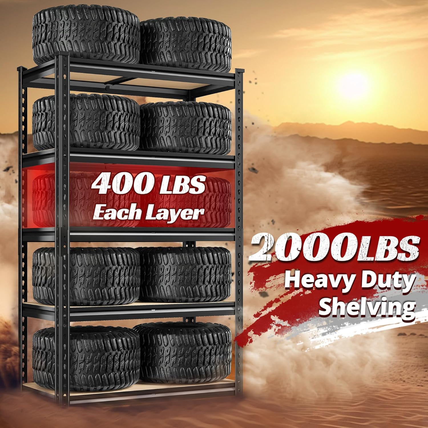 - 【2000LBS Garage Shelving Heavy Duty】REIBII's metal shelves consist of thickened metal frame that can hold up to 400 pounds per shelf for a total load capacity of 2000 pounds, which makes the storage shelves more stable and able to store many items for a long time