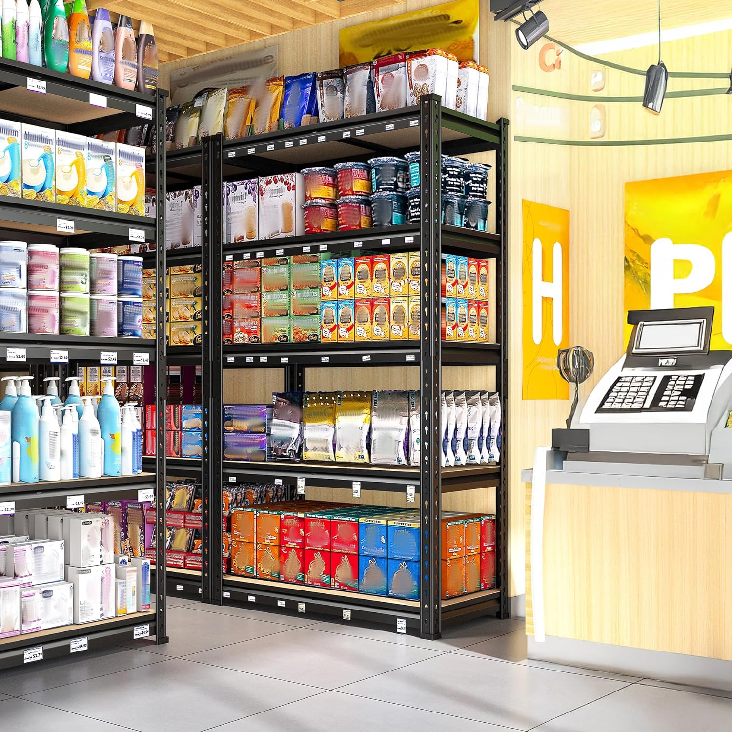 - 【11.8"D x 27.6"W x 60"H Multifunctional Heavy Duty Shelving】The perfect size metal shelf is suitable for garage, pantry, kitchen, basement, closet, living room, storage room, library, office, school, warehouse, supermarket and other different spaces. The shelves not only expand your storage space and make your home more clean, but the open space allows you to find items at a glance